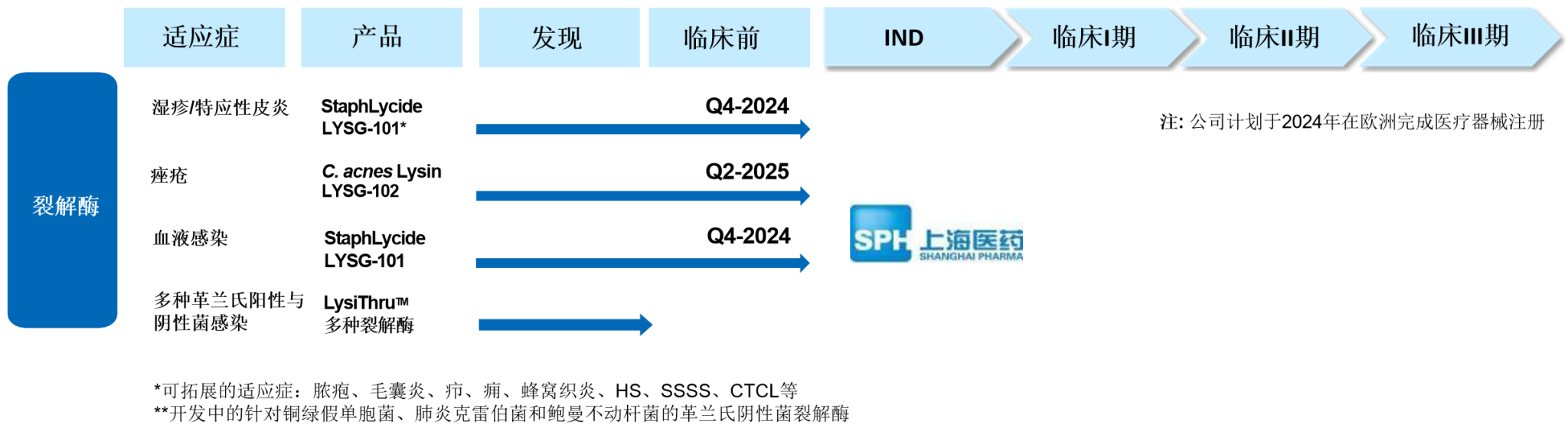 。依赖LysiThru™, 乐斯吉公司正在开发针对多种ESKAPE病原菌的裂解酶管线,包括多重耐药革兰氏阴性病原菌。